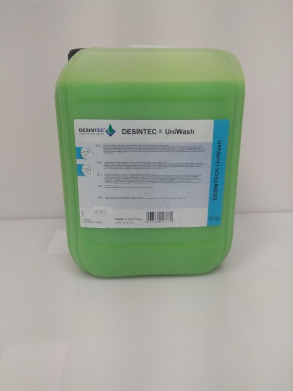 Το Desintec UniWash είναι καθαριστικό, απολυμαντικό και προϊόν περιποίησης. Βάσει της υψηλής αξιοπιστίας των καθαριστικών του ιδιοτήτων, το UniWash αφαιρεί ιδανικά την οργανική ύλη από την θηλή. Η σύνθεση των συστατικών του διατηρούν το δέρμα απαλό. Ο καθαρισμός του μαστού πριν την αρμεγή, υποβοηθά την εφαρμογή των θηλάστρων και διεγείρει την έκκριση ωκυτοκίνης της αγελάδας. Το UniWash είναι καλλυντικό και καθαριστικό προϊόν γενικής χρήσης για τα ζώα. Αφαιρεί τα οργανικά και ανόργανα υλικά από το δέρμα και το τρίχωμα των ζώων. Το UniWash προκαλεί μείωση της επιμόλυνσης του δέρματος λόγω της μείωσης της συγκολλητικής ικανότητας των παρασίτων. Το UniWash είναι ανθεκτικό στην διάλυσή του σε νερό με μεγάλη σκληρότητα και είναι δραστικό σε ευρύ φάσμα pH με καλή αλκαλική και όξινη σταθερότητα. Το UniWash είναι ελεύθερο από τεταρτογενείς ενώσεις αμμωνίου.
